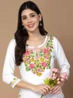 White Kashmiri Embroidered Kurti