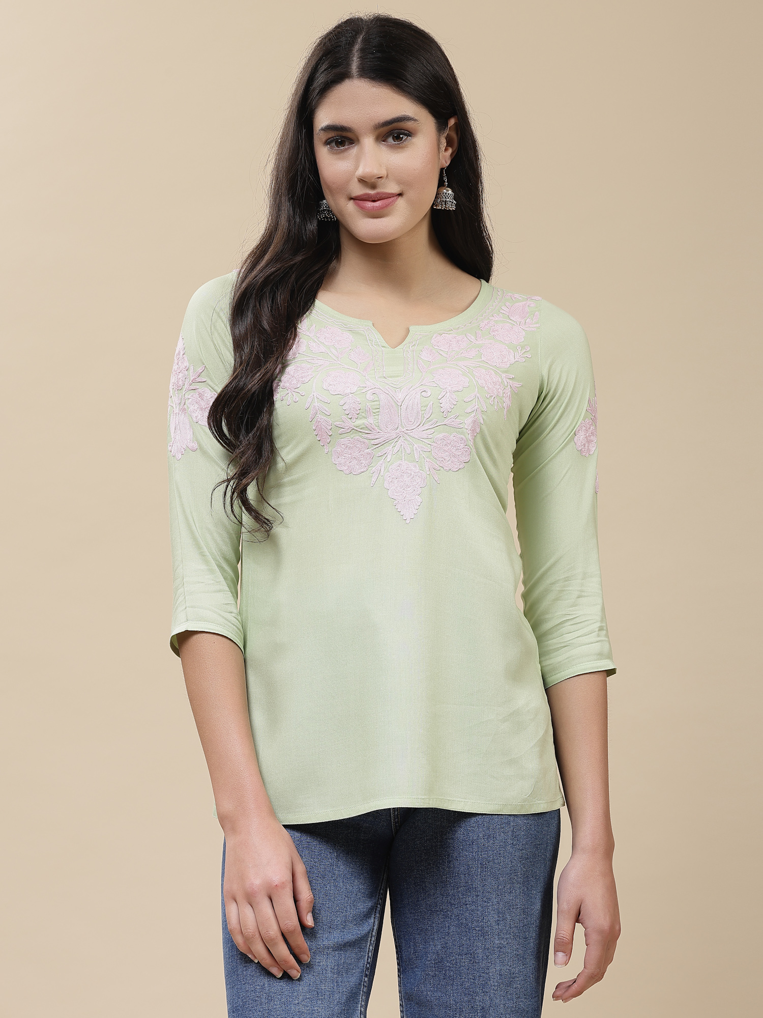 Home Short Kurtis Heer Kashmiri Pastel Green Kurti