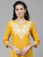 Mustard Self Chikankari Short Kurti