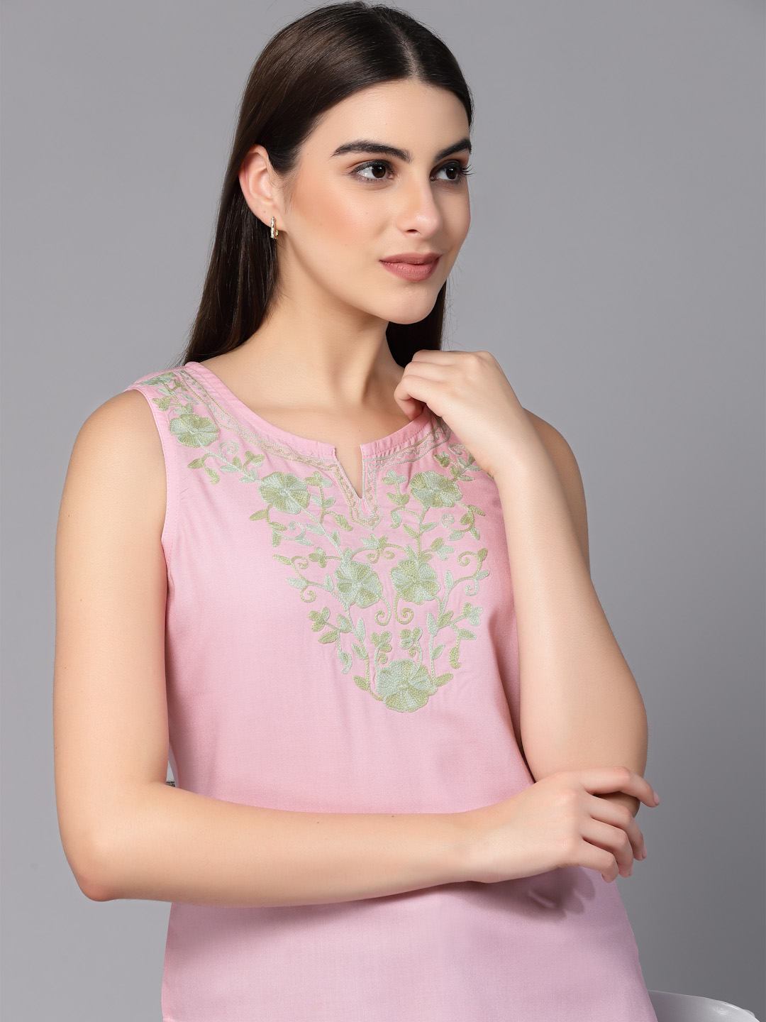 Nadia Kashmiri Light Pink Sleeveless Kurti