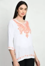 White Kashmiri Embroidered Short Kurti