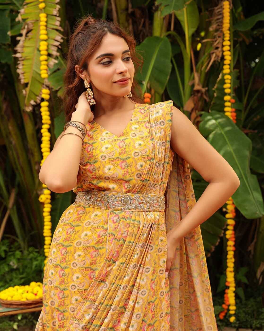 Home Saree Women Floral Print Pre-Stitched Saree with Contrast Border
